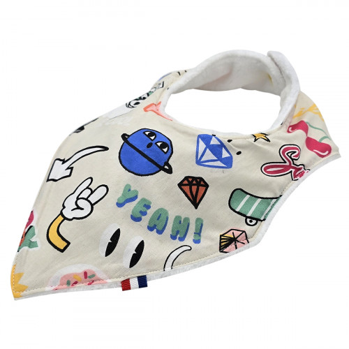 Questo bavaglino personalizzato è retrò nei colori nero e dorato, abbastanza da sfoggiare in pubblico ! Per un regalo di nascita super elegante e trendy lo consigliamo. Da tenere sempre in borsa in caso di bava estrema . Questo bavaglino bandana è indispensabile per tutte le pappe ed è anche un accessorio di moda per accompagnarlo in tutte le sue avventure.