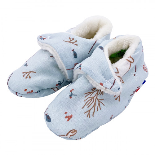 Pantofole basse "Le Nimbus Bleu" ultra stilose che riscalderanno i piedini del bambino con classe! Ideale per un baby shower originale.