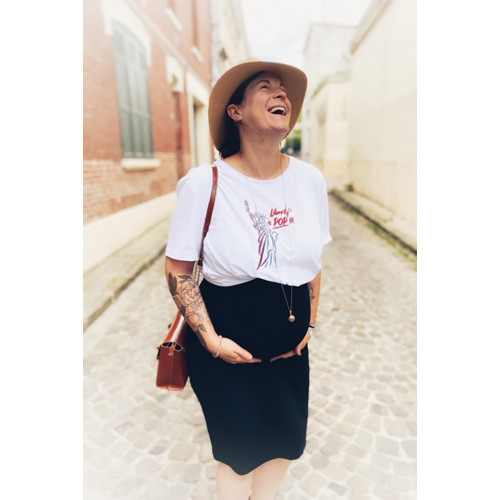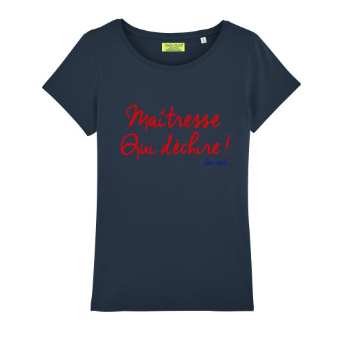 Le macaron bleu or rouge brodé en bas à droite nous rappelle que ce T-shirt est fabriqué en France avec beaucoup d'amour...