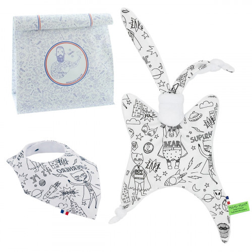 Envie d'offrir un cadeau de naissance ultra stylé ? Sachez que pour un bébé avoir son doudou assorti à son bavoir bandana c'est la méga classe ! (oui ils nous l'ont dit)